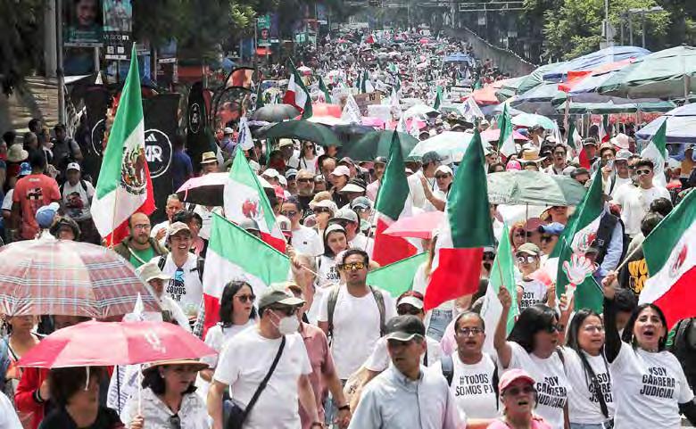 ▲ Al insistir en que la enmienda al Poder Judicial –que será dictaminada hoy por diputados– vulnera sus derechos laborales y representa un retroceso en el sistema de justicia en México, cientos de trabajadores, ciudadanos y actores políticos se movilizaron ayer del Monumento a la Revolución a la sede de la Suprema Corte (en