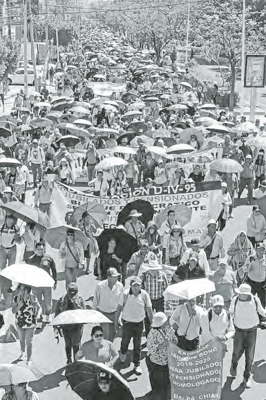 ▲ Integrantes de la sección 7 arrancaron ayer una jornada de protesta de 48 horas, que incluyó un mitin y un plantón en Tuxtla Gutiérrez, para exigir la reinstalación de la mesa nacional tripartita de trabajo con la presidenta Claudia Sheinbaum. Demandan la