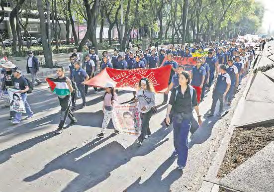 Familiares y normalistas marcharon ayer en la CDMX y Chilpancingo por la desaparición de los estudiantes de Ayotzinapa hace más de 11 años. Reprocharon que la CNDH “no está del lado de las víctimas” al declararse imposibilitada para integrar la Comisión de la Verdad para el Caso Iguala, como lo ordenó un tribunal. Foto Jorge Á. Pablo García A. VILLASEÑOR, J. LAURELES Y S. OCAMPO / P 12