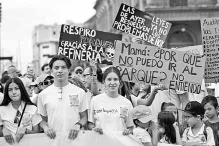 A las 17 horas empezó la marcha. Los participantes portaban mantas y pancartas con mensajes como “No más veneno, queremos aire bueno”, “Por mi Derecho a Respirar Aire Limpio”, “Aire Limpio Ya”, “Cuida mi futuro, queremos aire puro”.