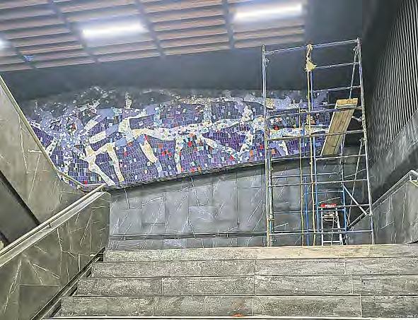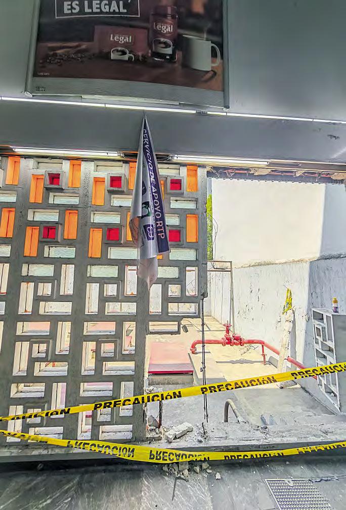 La Jornada constató que la obra del arquitecto Enrique del Moral, en la estación Viaducto de la línea 2, sufrió daños. El Sistema de Transporte Colectivo informó que el muro está en trabajos de renovación y aseguró que no está bajo protección del Inbal que, por su parte, realizaría una visita para “verificar el estado de esa pieza”. Foto Ángel Vargas / CULTURA