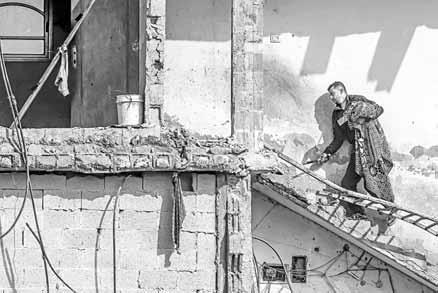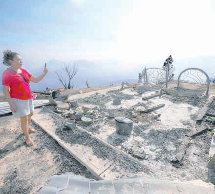 ▲ Una mujer en Chicahuaxtla, Veracruz, toma video de lo que fue su casa y que tras el paso del fuego quedó reducida a dos estructuras metálicas de sus camas y algunos enseres de cocina. Abajo, voluntarios y elementos de distintas corporaciones hacen una brecha cortafuegos en la misma entidad. Fotos Afp y La Jornada