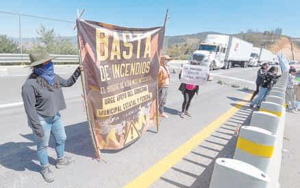 San Francisco Xochicuautla y San Lorenzo Huitzizilapan, municipio de Lerma, estado de México, bloquearon ayer desde las 9 horas la autopista Naucalpan-Toluca para exigir a las autoridades apoyo para combatir los incendios forestales que arrasan las zonas altas de la demarcación desde hace una semana.