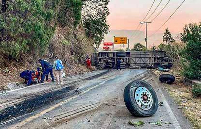 t La unidad, proveniente de Guanajuato, viajaba a alta velocidad y volcó al quedarse sin frenos en la carretera JoquicingoMalinalco, estado de México, informaron autoridades. Otras 27 personas resultaron heridas. Foto Afp. corresponsales