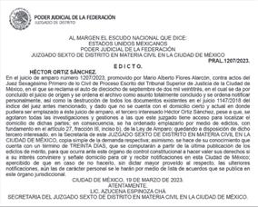ESTADOS UNIDOS MEXICANOS PODER JUDICIAL DE LA FEDERACIÓN TRIBUNAL COLEGIADO DEL TRIGÉSIMO PRIMER CIRCUITO CAMPECHE, CAMP. EDICTO: TRIBUNAL COLEGIADO DEL TRIGÉSIMO PRIMER CIRCUITO. En el juicio de amparo directo 51/2024, promovido por Hermenegildo Reyes Arjona, se ordena emplazar a los tercero interesados Luis Aarón Uc Coba y Sergio Puc Madera, haciéndoseles saber que cuentan con TREINTA DÍAS contados a partir de la última publicación de edictos, para que comparezca a este tribunal colegiado a defender sus derechos y señalen domicilio en esta ciudad donde oír y recibiranterior toda vez que la quejosa promovió demanda de amparo contra la sentencia de nueve de agosto de dos mil veintitrés, dictada por la Penal y Especializada en Adolecentes del Tribunal Superior de Justicia del Estado de Campeche, en el toca 01/22-2023/222. San Francisco de Campeche, Campeche, a 25 de marzo de 2024. LIC. JOSE DE LOS ANGELES MARTÍN BALÁN SECRETARIO DE ACUERDOS DEL TRIBUNAL COLEGIADO DEL TRIGÉSIMO PRIMER CIRCUITO. CUANTÍA MENOR ORALES FAMILIARES EDOMEX EDICTO Al C. OSCAR ARMANDO TZONI AYALA, vecino de esta ciudad, se le requiere para presentarse la brevedad, en las insta laciones de la SOCIEDAD MUTUALISTA en Justo Sierra número 55 Colonia Centro, C.P. 06020, Alcaldía Cuauhtémoc, CDMX, número de teléfono 55 55224229de Póliza de Vida del expediente TEST 79199, con el respectivo documento que acredite su identidad. A, ra aTA PRECIO +IVA $630.00 4.6 cm X 3.7 cm BASE ALTURA COTIZACIONES: 55 9183 0300 / EXT. 4192, 4184 Y 4157 55 4145 6888 | 55 2919 4945 CONTACTOS: