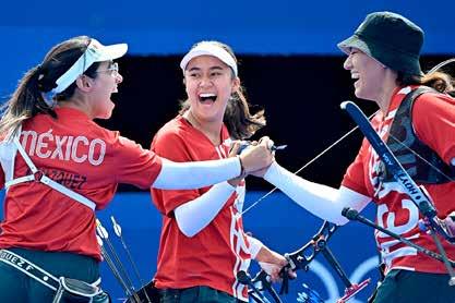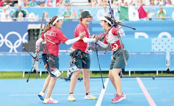 u Ana Vázquez, Ángela Ruiz y Alejandra Valencia vencieron 6-2 al equipo de Países Bajos para ocupar el tercer lugar en tiro con arco, la primera medalla para México en los Juegos Olímpicos de París 2024. Valencia ya había ganado ese metal en Tokio 2020, en equipos mixtos. Foto Afp REDACCIÓN / DEPORTES