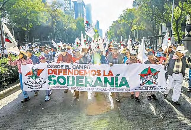 ▲ Organizaciones campesinas y sindicales se manifestaron ayer del Ángel de la Independencia al Zócalo capitalino en repudio a las amenazas arancelarias del