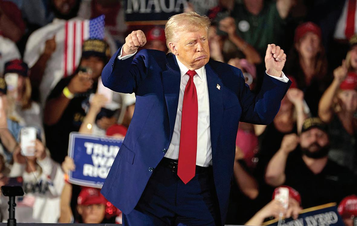 ▲ Donald Trump festejó ayer ante seguidores con un discurso en Michigan, donde llamó monstruos a los migrantes y aseguró que con sus medidas ha reducido el flujo de indocumentados a casi cero, además de defender la imposición de aranceles; sin
