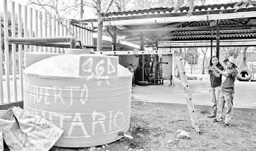Jazmín explica que el agua recolectada sirve para regar la hortaliza que tienen cerca y cuya producción sirve, por el momento, para la alimentación de sus familias.