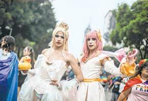 ▲ Un ambiente festivo se vivió ayer en la movilización, con música, personas que lucían divertidos atuendos y ondeaban banderas arcoíris, sin faltar los patrocinios de diversas marcas. El Gobierno