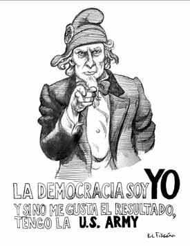Hoy la ultraderecha pide la intervención extranjera y un golpe militar que derroque al gobierno democráticamente electo. La oposición venezolana impulsa