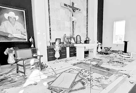 ▲ Tras causar destrozos en la capilla familiar de Dámaso López Núñez, El Licenciado –preso en EU–, desconocidos robaron restos de su padre y hermano de un panteón ubicado en Eldorado, Sinaloa. Foto El Debate REDACCIÓN / P 25