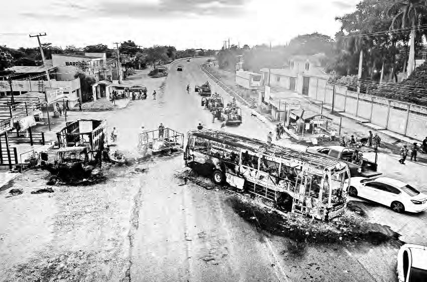 Sinaloa, lo que dio lugar a un enfrentamiento y al bloqueo de vías de comunicación de la zona con vehículos incendiados. Más tarde, el gobernador Rubén Rocha Moya llamó a la población a la calma e informó que la situación estaba bajo control. Foto Afp redacción / P 13 y 31