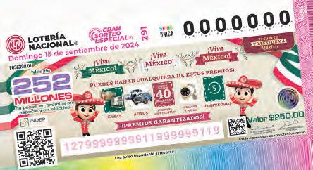 Editor Responsable María del Carmen Lira Saade, Directora General. Certificado de Reserva de Derechos al Uso Exclusivo del Título No. 04-1984-000000000571-101; ISSN 0188-2392, ambos otorgados por el Instituto Nacional del Derecho de Autor. Certificado de Licitud de Título número 2387 y Certificado de Licitud de Contenido número 1616, otorgados por la Comisión Calificadora de Publicaciones y Revistas Ilustradas de la Secretaría de Gobernación. Impresión: Imprenta de Medios, S.A. de C.V. con domicilio en Avenida Cuitláhuac 3353, colonia Ampliación Cosmopolita, Alcaldía Azcapotzalco, C.P. 02670, Ciudad de México, teléfonos 55 5355 6702 y 55 5355 7794, Fax: 55 5355 8573. Distribución: en el interior de la República y el extranjero por Distribuidora y Comercializadora de Medios, S.A. de C.V. CENTRAL DE SUSCRIPCIONES, con domicilio en Avenida Cuitláhuac 3353, colonia Ampliación Cosmopolita, Alcaldía Azcapotzalco, C.P. 02670, Ciudad de México, teléfonos 55 5541 7701 y 55 5541 7002. Distribuido en la Ciudad de México por la Unión de Expendedores y Voceadores de los Periódicos de México, A.C., con domicilio en calle Guerrero número 50, Colonia Guerrero, Alcaldía Cuauhtémoc, C.P. 06350, Ciudad de México, Teléfonos; 55 5591 1400 y 55 5535 1361. Este número se terminó de imprimir el 30 de agosto de 2024, con un tiraje promedio de 146,429 ejemplares.
