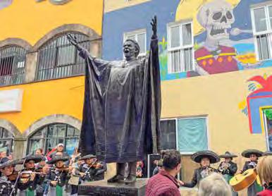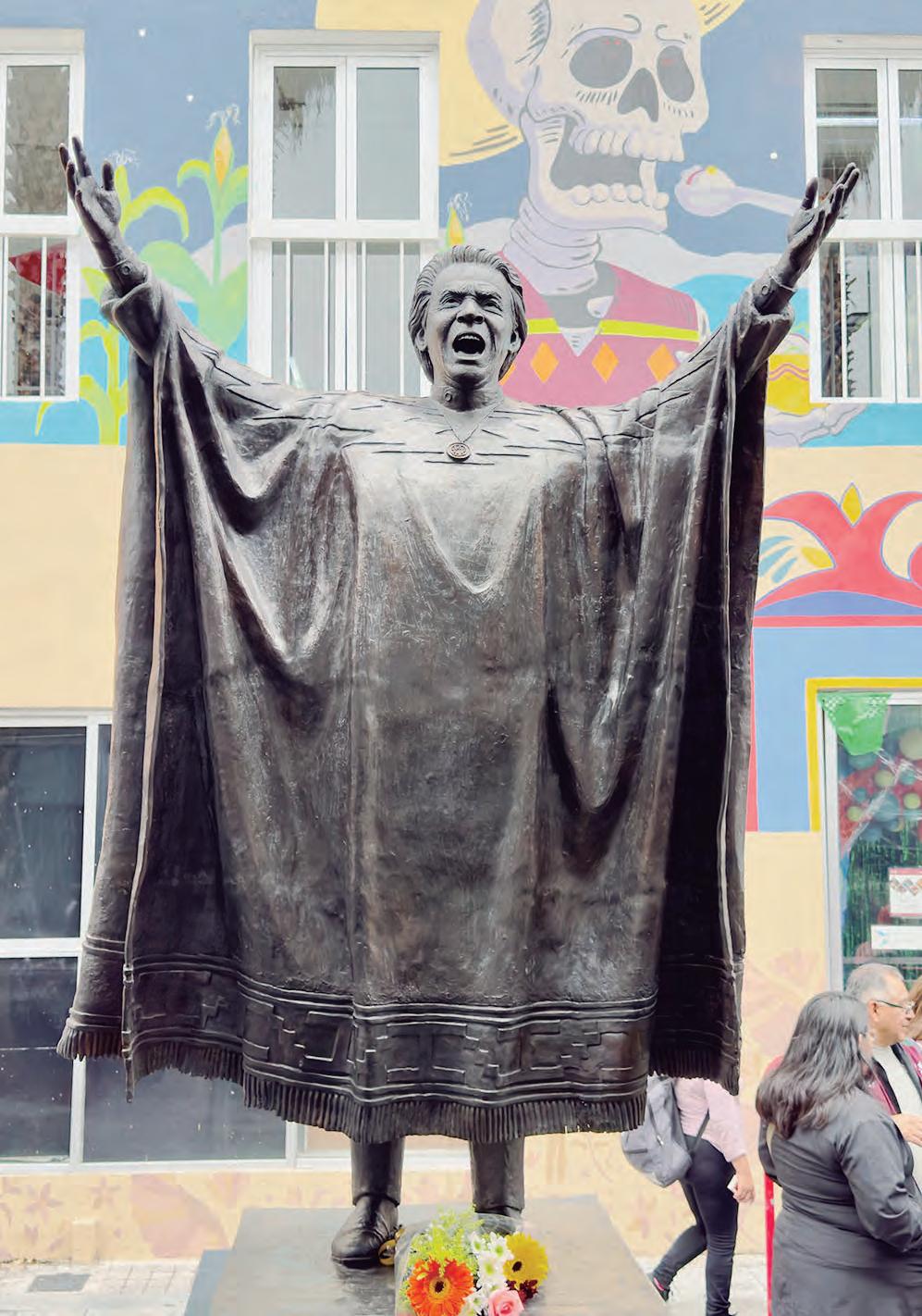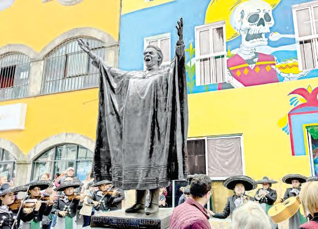 t “Les dejo de herencia mi libertad”, es la frase que está plasmada en la escultura de la cantante, develada ayer en el centro neurálgico de la música de mariachi en la Ciudad de México. La efigie de La Chamana, quien falleció en 2012, está junto a la de José Alfredo Jiménez, su gran compañero de parrandas, y otras figuras. Foto Roberto García Ortiz JUAn JoSé olIvAreS / espectáculos