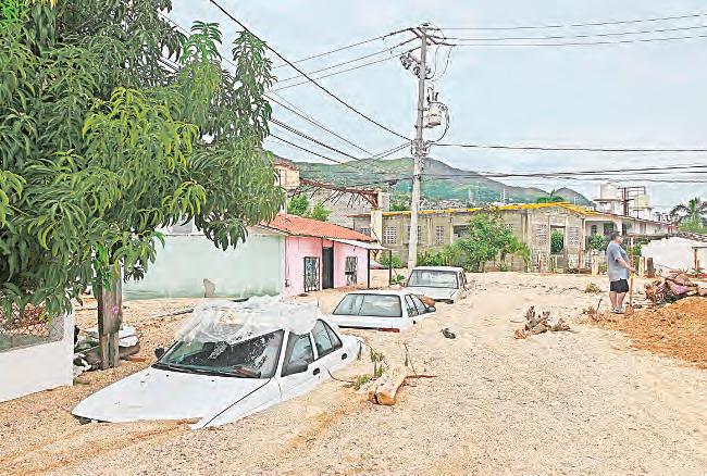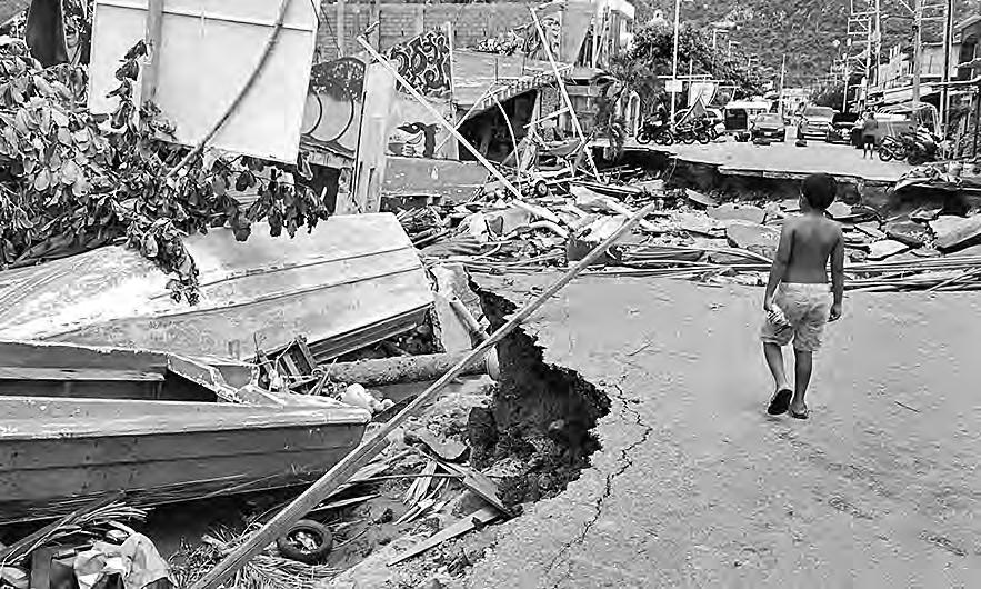 El presidente Andrés Manuel López Obrador informó que se restableció el servicio eléctrico en Acapulco, hay refugios funcionando y no se reportaron saqueos. También se trabaja en restablecer la comunicación con la Costa Grande, agregó, mientras en el aeropuerto continúan los vuelos de rescate. El miércoles, Claudia Sheinbaum se reunirá con la gobernadora Evelyn Salgado. Los decesos subieron a 16 en Guerrero. En la imagen, una de las calles del puerto afectadas por John Foto Afp H. BRISEÑO Y S. OCAMPO, CORRESPONSALES / P 33 Y 34