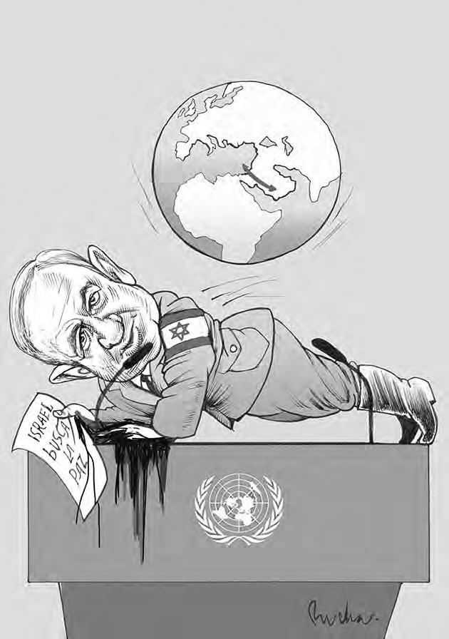 el Estado que representa ha sido el principal instigador histórico –cuando no el perpetrador directo– de las guerras en Medio Oriente, y que su gobierno se ha empeñado por sostener contra viento y marea, y con todos los recursos bélicos, económicos, políticos y diplomáticos, las atrocidades que las fuerzas de Israel cometen en la región, empezando por el genocidio en curso de la población gazatí.