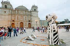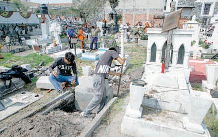 En el panteón de San Isidro, en Azcapotzalco, el tercero más grande de la ciudad, numerosas lápidas fueron decoradas ayer, algunas con sólo un par de ramos de cempasúchil y otras más elaboradas con calaveras y catrinas impresas en cartón.