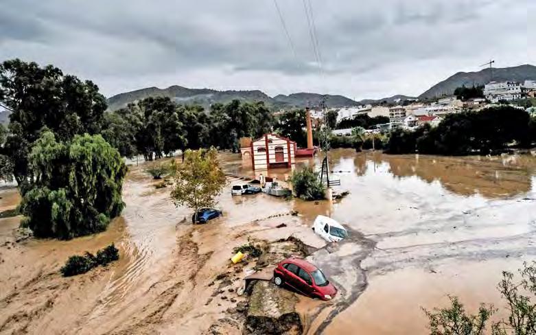 s En la mayor precipitación pluvial desde 1966, gran parte del este y sur de España sufrió daños en infraestructura y viviendas. En Valencia, las autoridades informaron que hubo varios muertos, inundaciones, cortes de tránsito, cultivos arrasados y el descarrilamiento de un