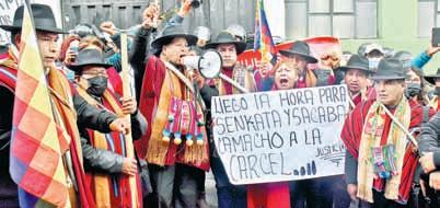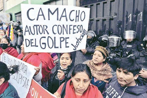 enviado a una cárcel en El Alto, donde los reos protestaron contra el posible traslado del opositor. Las principales organizaciones de la región del funcionario aprehendido anunciaron que realizarán hoy un paro de labores de 24 horas y bloqueos. En la imagen, partidarios del depuesto Evo Morales exigen justicia. Foto Afp AGENCIAS / P 25