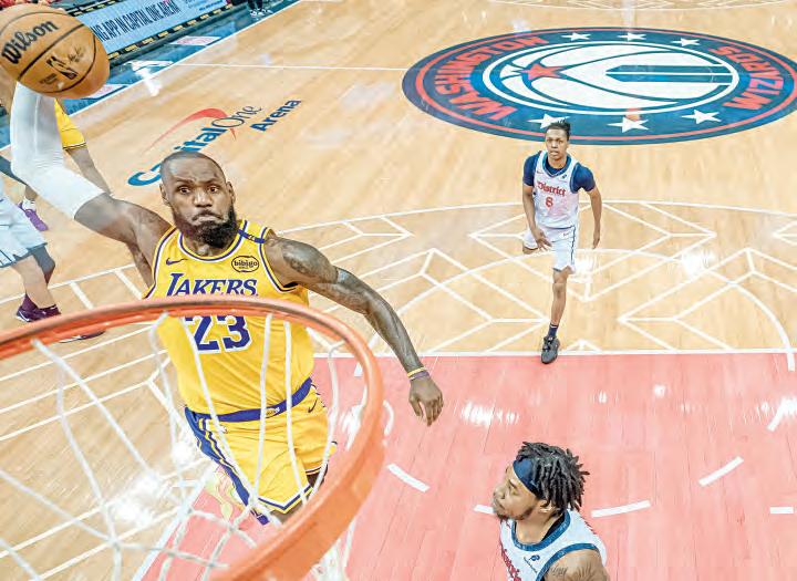 ▲ LeBron James anotó ayer 24 puntos y entregó 11 asistencias en la aplastante victoria de los Lakers de Los Ángeles por 134-96 sobre los Wizards de