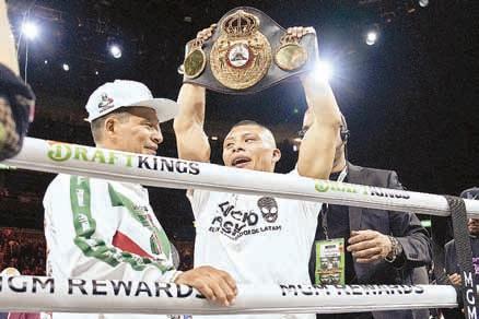 t El mexicano isaac Cruz doblegó a rolando romero por la vía del nocaut técnico en el octavo asalto, con lo cual se coronó en la asociación Mundial de Boxeo. En otra pelea, el estadunidense Sebastián Fundora arrebató el cinturón superwélter de la oMB al australiano Tim Tszyu, en la T-Mobile de Las Vegas. Foto ap / P 27