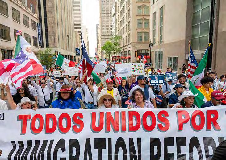 a los migrantes, los arrestos y deportaciones de estudiantes que se oponen a la guerra en Gaza y el intento de establecer una oligarquía en Washington. en la imagen, marcha en dallas en demanda de lograr una reforma migratoria. Foto afp