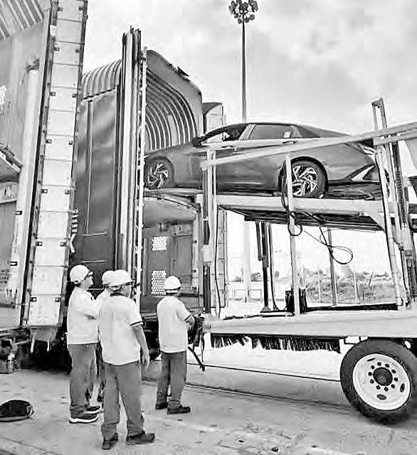 ▲ El Corredor Interoceánico del Istmo de Tehuantepec (CIIT) comenzó el viernes pasado la prueba piloto de sus servicios con el traslado de 900 vehículos de la empresa sudcoreana Hyundai que desembarcaron en el puerto de Salina Cruz, Oaxaca, y luego emprendieron el viaje en unos furgones BI-MAX con rumbo a Coatzacoalcos, Veracruz,