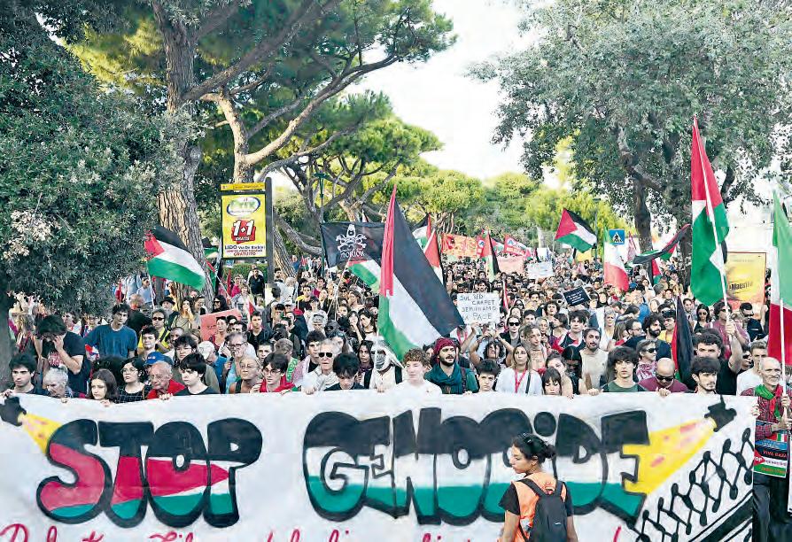 p Barcos que saldrán de génova para unirse a la global sumud Flotilla y protesta cerca de la sede de la Mostra en Venecia. Fotos afp a tejeDa, j caballero y agencias / P 16 y eSPeCtÁCuLoS