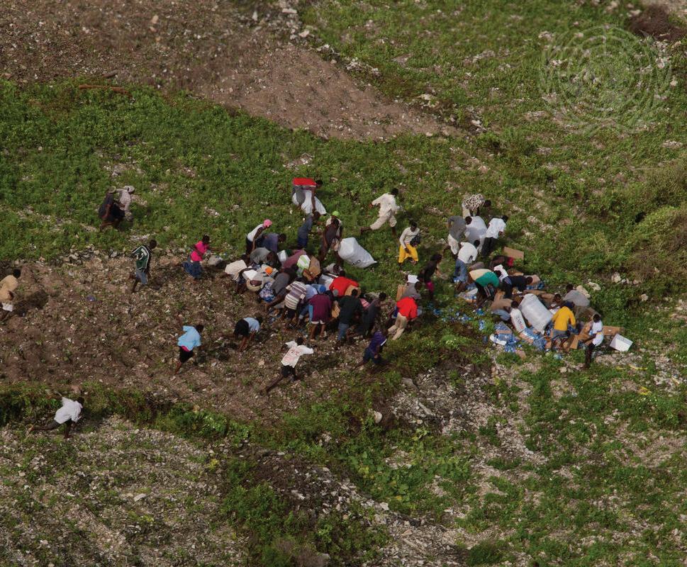Víctimas de un huracán en Haití, recogen ayuda humanitaria que les cae del cielo