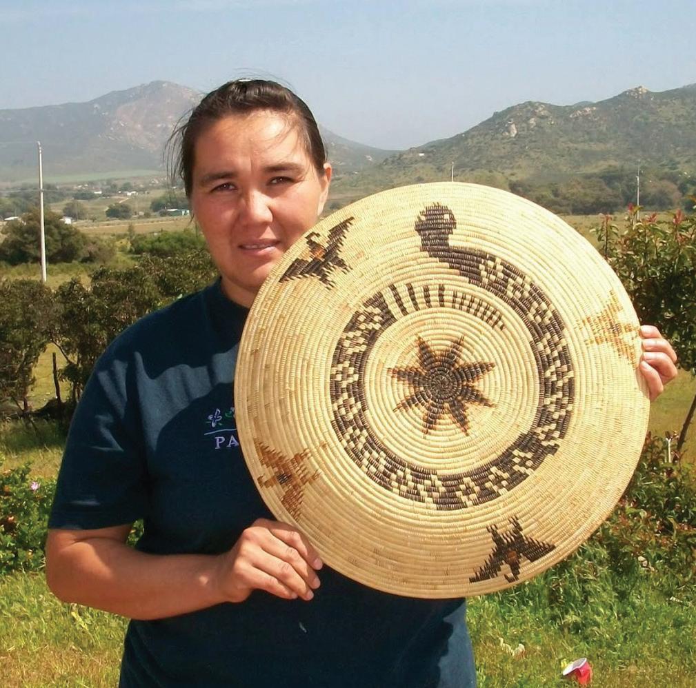 Aurelia Ojeda, presumiendo la artesanía tradicional del pueblo kumiai