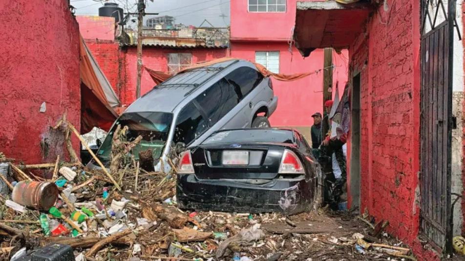 Vehículos arrastrados dentro de una vivienda en Ecatepec tras las fuertes corrientes registradas el 7 de septiembre de 2021