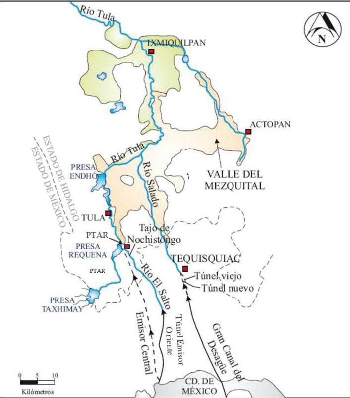 Cuatro siglos de obras hidráulicas evacuaron los lagos y los ríos de esta cuenca hacia la vecina cuenca del río Tula. El Gran Canal del Desagüe, el Drenaje Profundo y el Túnel Emisor Oriente forman parte de una red de colectores y emisores que, junto con presas y vasos de regulación, permiten que este valle no se encuentre en gran medida debajo del agua.