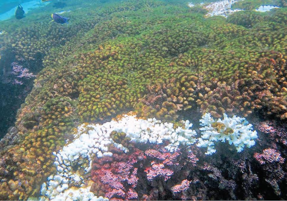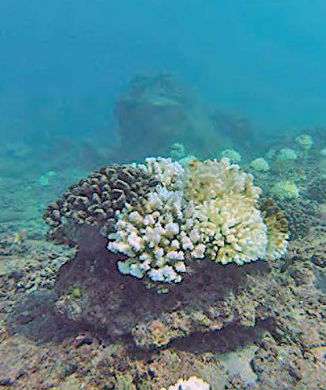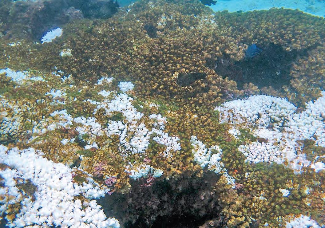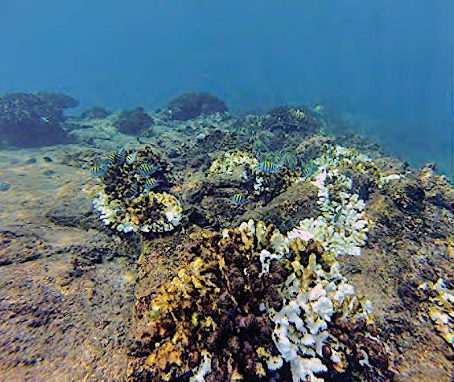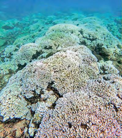 En portada: corales totalmente blanqueados durante la onda de calor de 2023. Durante el blanqueamiento, los corales expulsan las microalgas que les dan color