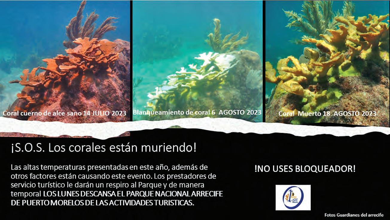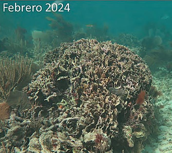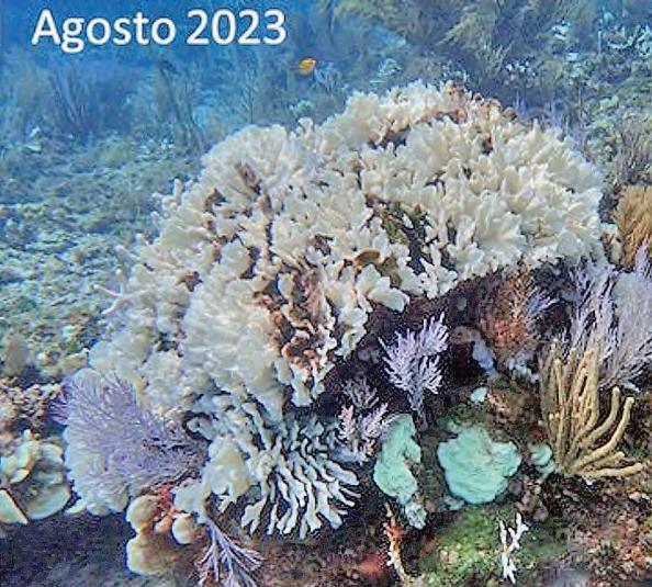 larmente severos en los corales cuernos de alce. En Puerto Morelos, vimos y documentamos como miles de colonias de este coral murieron entre agosto y septiembre de 2023.