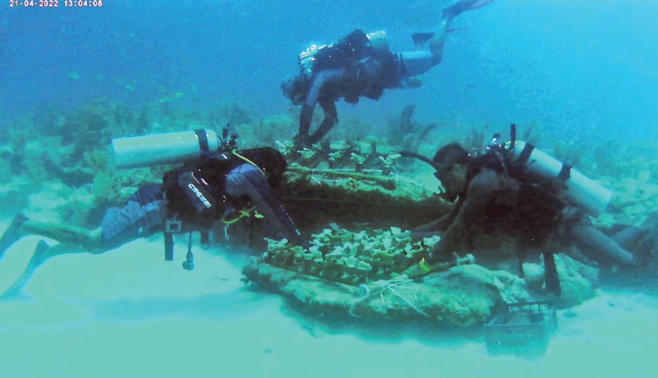 Para ello, seleccionamos un sitio a 12 metros de profundidad, donde ya se habían establecido viveros de coral.