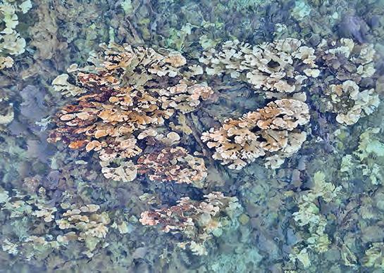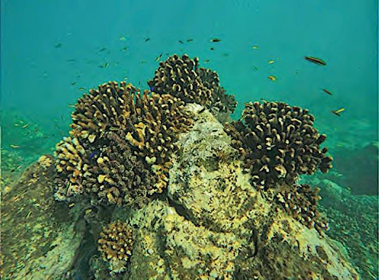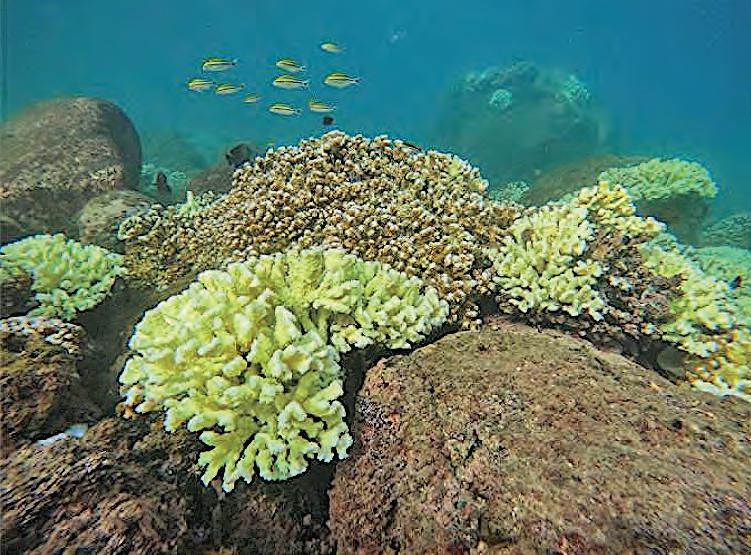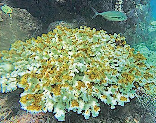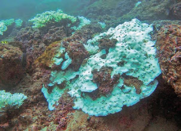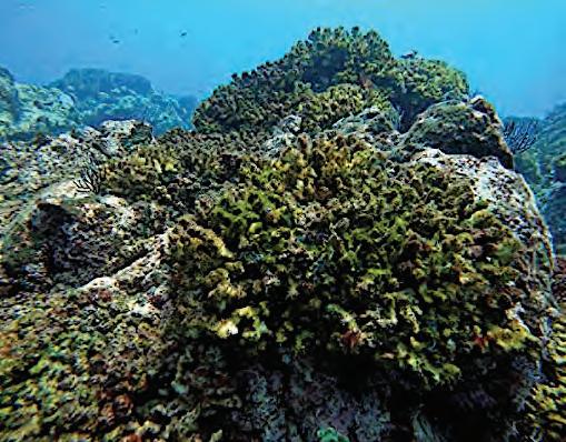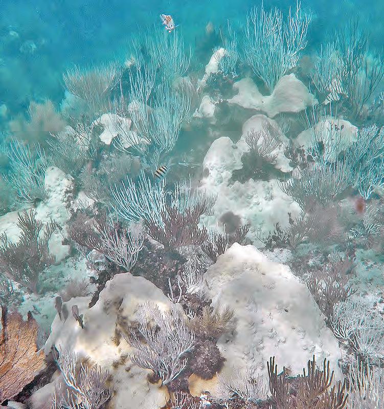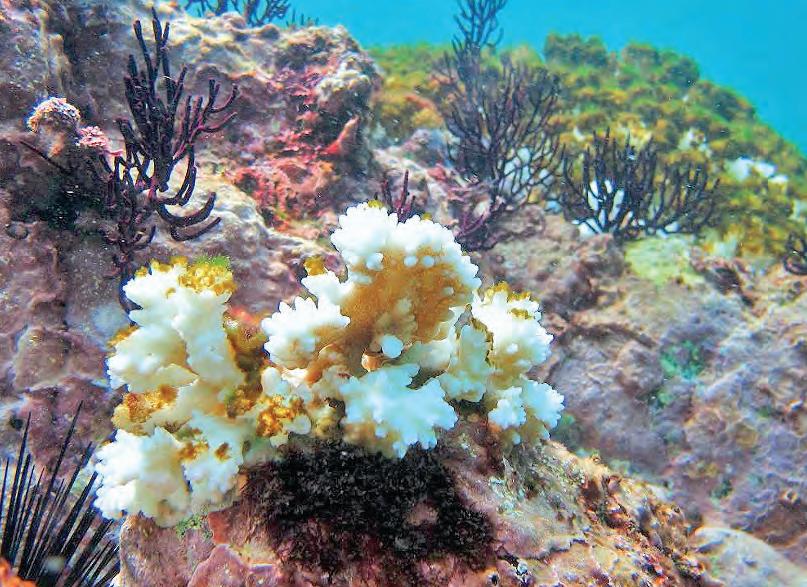 sin miras de recuperación. Esto no solo se observó en corales. La onda cálida ocasionó que los arrecifes asemejaran un páramo desierto durante varios meses ya que erizos, estrellas de mar, peces, gorgonias, abanicos de mar, esponjas y cangrejos se esfumaron del arrecife. Las especies que pudieron moverse lo hicieron hacia zonas profundas, el resto simplemente falleció. Entre tanta mortalidad, parece haber una ventana de esperanza. Existen, como dice el dicho, “negritos en el arroz”, ya que hay algunos sitios donde los corales, aunque se blanquearon, se encuentran rebosantes y llenos de vida.