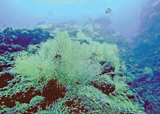 El coral negro Antipathes galapagensis tiene una coloración verde y amarilla, y sus concentraciones son tan grandes que forman bosques en el Pacífico mexicano