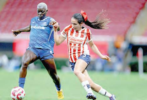 ▲ La defensa rojiblanca (3) que aquí disputa el balón con Michaela Abam, anotó de cabeza el tanto de la victoria. Foto tomada de X, Chivas Femenil