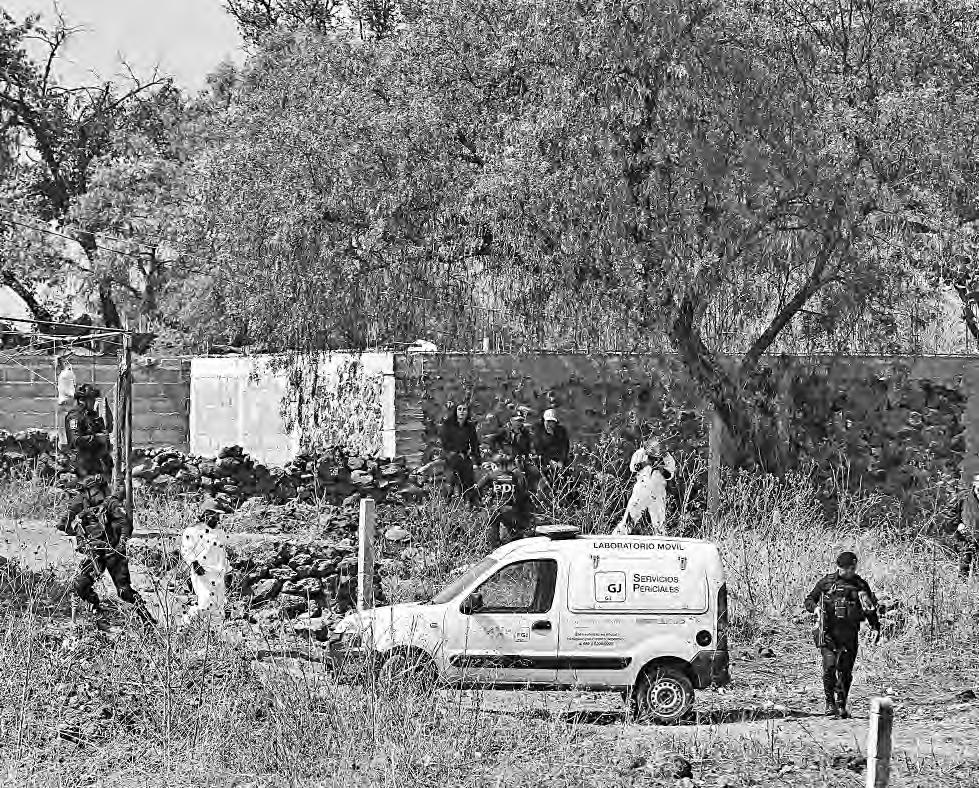 del agrupamiento Cóndores, que sobrevolaron el área, además de policías de investigación. Por el hallazgo se avisó al agente del Ministerio Público de la Fiscalía Especializada en la Búsqueda, Localización e Investigación de Personas Desaparecidas, que abrió la carpeta de investigación y extrajeron los restos. Los tres predios fueron sellados y quedaron bajo resguardo policial, en tanto que la droga y los restos fueron asegurados y los detenidos quedaron a disposición de las autoridades judiciales.