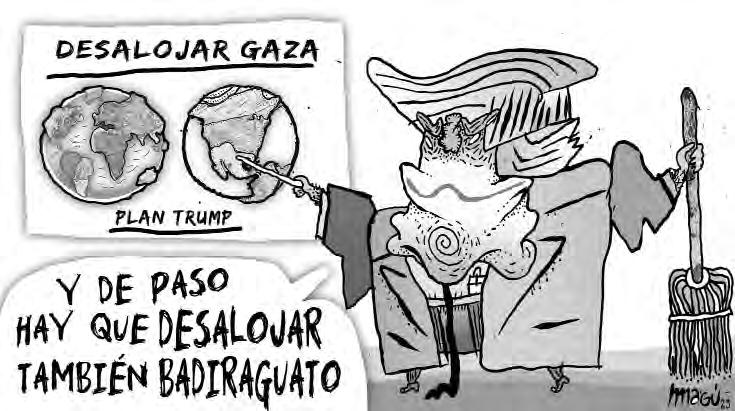 Mientras todo el mundo rechaza el plan de Trump, que junto con el genocida Netanyahu habla de apoderarse de la franja de Gaza y desplazar a los palestinos, el presidente estadunidense dice que a todo el mundo le “encanta” su plan. Ignoro a cuál mundo se refiera, debe ser el de la sinrazón y el de la fuerza de las armas el que apoya semejante idea bestial.