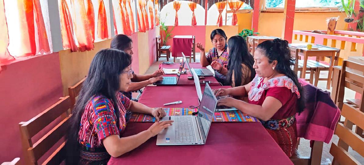 Jóvenes k’aqchikel se reúnen para trabajar en el proyecto de la Enciclopedia Maya. Foto: Joel Solano