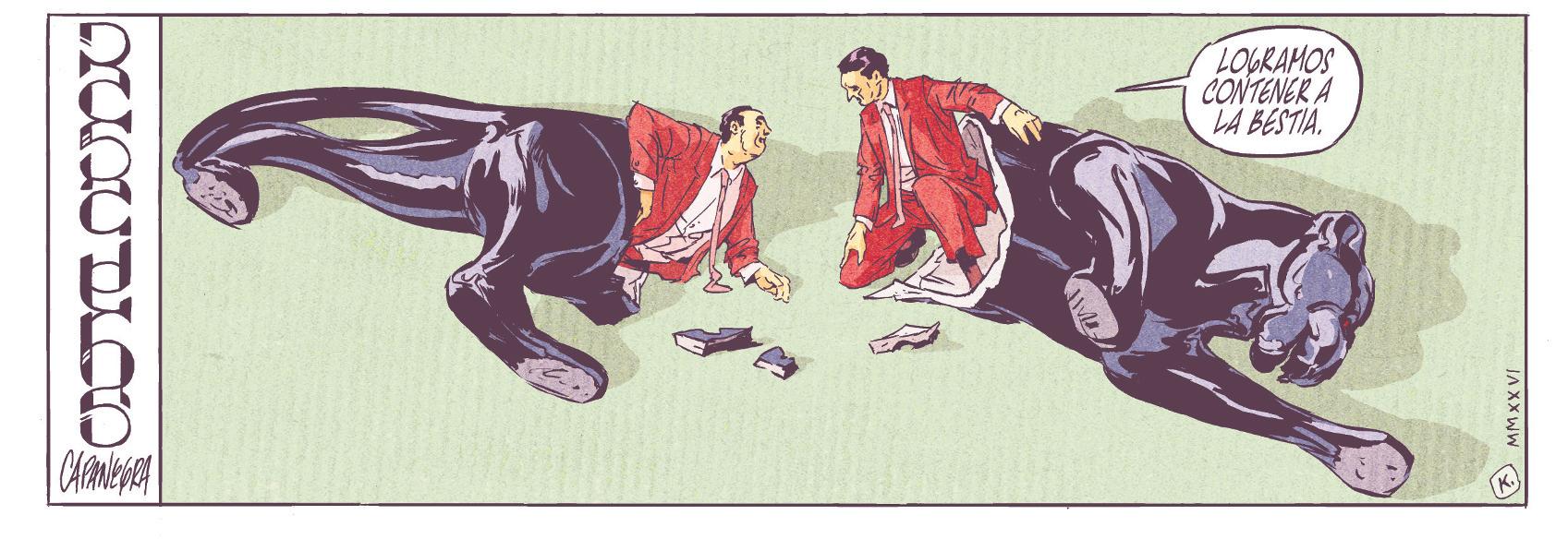 –Pues como a la mayoría que no votaron por sus libertadores y eligieron a las personas equivocadas, como bien la anunció Denise Dresser –comentó el policía, pretendiendo que yo no advirtiera las cadenas que sujetaban sus tobillos.