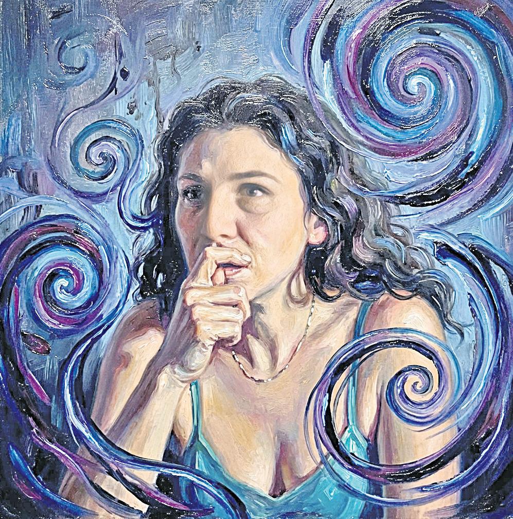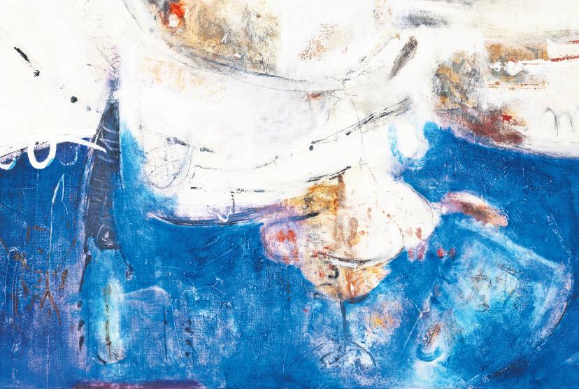 sionismo: vibraciones interiorizadas en el lienzo. Por eso la designación de pintura abstracta no le acomoda del todo. El referente inevitable es el cielo estrellado, pero un cielo de extrañas tonalidades, lejanas del negro y el azul convencional, estrellas que titilan con transparencias casi mágicas. Hay algo de danza en sus cuadros: los colores bailan no tanto ante los ojos sino ante una especie de tacto de la visión, de pulsaciones eléctricas de ese universo cuántico intuido: una tirada de dados que ha descubierto el color en su melancólica alegría. Esa mirada hacia lo alto tiene su contraparte: el universo nos mira. Y nos mira en ese inevitable enrarecimiento que propine su mural, gran culminación de la exposición que la recuerda en el Palacio de Bellas Artes.