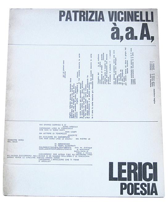 Patrizia Vicinelli nace en 1943 en Bolonia, donde muere el 9 de enero de 1991. En los años sesenta colabora con Aldo Braibanti y Emilio Villa; en 1966 entra a formar parte del Grupo 63, escribiendo en revistas como Ex, Quindici, Che fare, Marcatré y Alfabeta. Su poesía visual (parcialmente recogida en à, a, A, Lerici, 1967) ha sido expuesta en todo el mundo, desde Milán a Nueva York, desde Tokio a Venecia y San Francisco; su poesía fonética y sonora se puede escuchar en varias grabaciones. Como actriz participa también en diversas películas de vanguardia, con artistas como Alberto Grifi y Gianni Castagnoli. En 1969 se muda a Tánger, Marruecos, donde publica el poemario gráfico Apotheosys of a schizoid woman (Tau/ma, 1979). A su regreso en Italia ingresa a la cárcel de Rebibbia, en Roma, por posesión y uso de drogas, y con sus compañeras de prisión arma una versión feminista de la Cenicienta. Sus últimas obras son el poemario No siempre recuerdan (Æelia Læiea, 1986), la novela inacabada Messmer y el poemario Los fundamentos del ser (sin editar, 1987). En 1983 actúa en la película de Claudio Caligari Amor tóxico, y en los años siguientes se dedica también al teatro y el ensayo. Después de su muerte por SIDA, una antología de Obras, preparada por Renato Pedio, fue editada por Scheiwiller en 1994. Toda su producción se recogió en No siempre recuerdan Poesía Prosa Performance, a cargo de Cecilia Bello Minciacchi, con un ensayo de Niva Lorenzini y una antología multimedia al cuidado de Daniela Rossi (Florencia, Le Lettere, 2009).