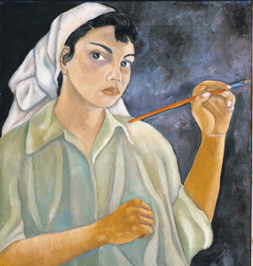 viajar a Europa y entrar en contacto con las vanguardias plásticas, viaje que, como sucedió con casi toda su generación, resultaría esencial. Algo de ese futuro de su pintura es lo que podemos ver en el conocido autorretrato escolar de 1948, con una mirada entre severa y desafiante que contrasta con aquella otra, esta vez una fotografía, unos diez años posterior (se ve a un lado en segundo plano a Manuel Felguérez, otro de los integrantes de la Ruptura, y con el cual contraería matrimonio en 1960) en la que esboza ya una sonrisa en sus labios.