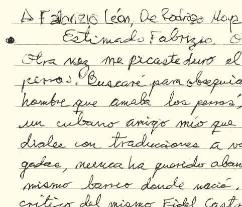 ▲ Fragmento manuscrito de una carta de Rodrigo Moya a Frabrizio León Diez.