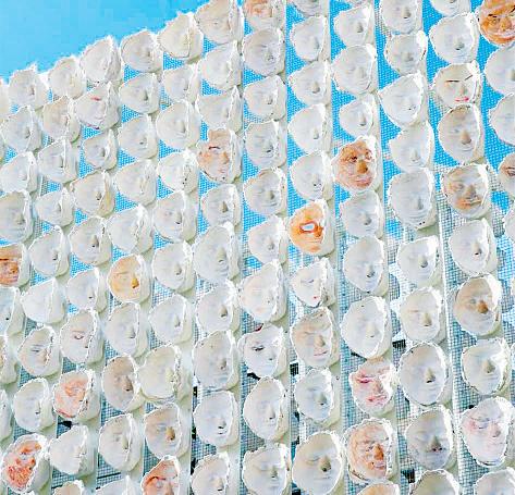 parte de la vida cotidiana de niños y adultos, y dando voz y visibilidad a las mujeres y a la comunidad LGBT, víctimas del odio y la discriminación, cuyas historias cargadas de dolor son silenciadas por la impunidad. En esta ocasión se trata de un homenaje a las comunidades transgénero del mundo entero, no binarias y no conformes con su género. La escultura titulada Mil veces un instante está compuesta por 726 rostros de personas trans, 363 del Reino Unido y 363 de México, reunidas en un monumental bloque rectangular que de inmediato remite al tzompantli prehispánico que fue su fuente de inspiración. La pieza está dedicada a Karla La Borrada, amiga y colaboradora cercana de Margolles, asesinada en Ciudad Juárez en 2015, y cuyo caso está aún impune. Esta pieza, realizada con moldes de yeso a manera de máscaras en las que han quedo impresas las huellas personales de cada rostro de las personas convocadas a participar, tiene un carácter procesual pues, al estar expuesta a la intemperie, sufrirá cambios, alteraciones y su posible desintegración, como metáfora de la propia fragilidad e impermanencia del ser humano en el tiempo.