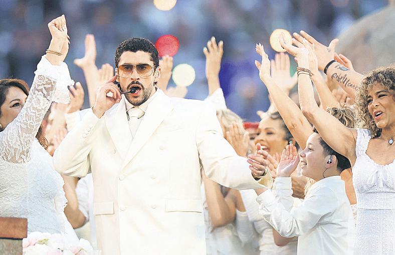 EN REALIDAD, Y PARA desconocimiento general, el pasado domingo 8 de febrero no fue la primera vez que Bad Bunny apareció en el espectáculo de medio tiempo de un Super Bowl: Shakira, quien lo encabezó en 2020, tuvo al Conejito Malo como invitado. Pero las diferencias entre aquel momento y el sucedido apenas hace una semana son enormes, de modo que pasar de mero convidado a protagonista sólo es el principio. En el ínter, y aunque ya de entrada sus malquerientes –que no son escasos, y muchos tampoco palmariamente ignorantes ni ágrafos– lo descalifican, haciendo gala de lo que dan por sentado es su propia superioridad cultural-estética, Bad Bunny se ha trastocado en algo más que un mero compositor e intérprete de reguetón, trap latino, salsa y pop urbano. Le guste o no a los exquisitos de toda laya y nivel, el éxito y por lo tanto la visibilidad e influencia del Conejito lo vuelve algo obvio: un referente de la música popular pero, al mismo tiempo y de manera inherente, uno en cuanto a gustos y estilos de vestimenta y vida en general, modos de sentir y de expresión, etecé.