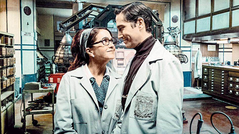 Gudiño–; contando con los suficientes fierros, en sentido literal y figurado, para que aquello no se vea de palmaria pacotilla; teniendo por consiguiente la ocasión para cotejar, entre aquel pasado ya remoto y este presente, una infinita lista de diferencias, constantes y transformaciones en diversos órdenes –sociológico, político, cultural, y con esos bastaría y sobraría–; teniendo, en fin, en las manos la posibilidad de dibujar una suerte de retrato paralelo de una sociedad en evolución, contrastando el espíritu pretérito con el contemporáneo, pues nada, que a los guionistas y a Cartas lo mejor o lo único que se les ocurrió fue contar, a fin de cuentas, una historia de amor no más allá de la muerte, como querría el poeta clásico, sino más allá de los viajes en el tiempo, por así decirlo. Sus protagonistas, según esto un par de científicos de la UNAM que consiguen fabricar una máquina del tiempo, vienen al presente pero por error de cálculo, quieren volver al pasado y ajustar su máquina, luego sólo él quiere regresar porque nomás no se halla con la igualdad de género que lo hace sentir relegado a un segundo plano, mientras a ella le va mejor que en los años sesenta y por lo tanto le gusta la idea de quedarse acá